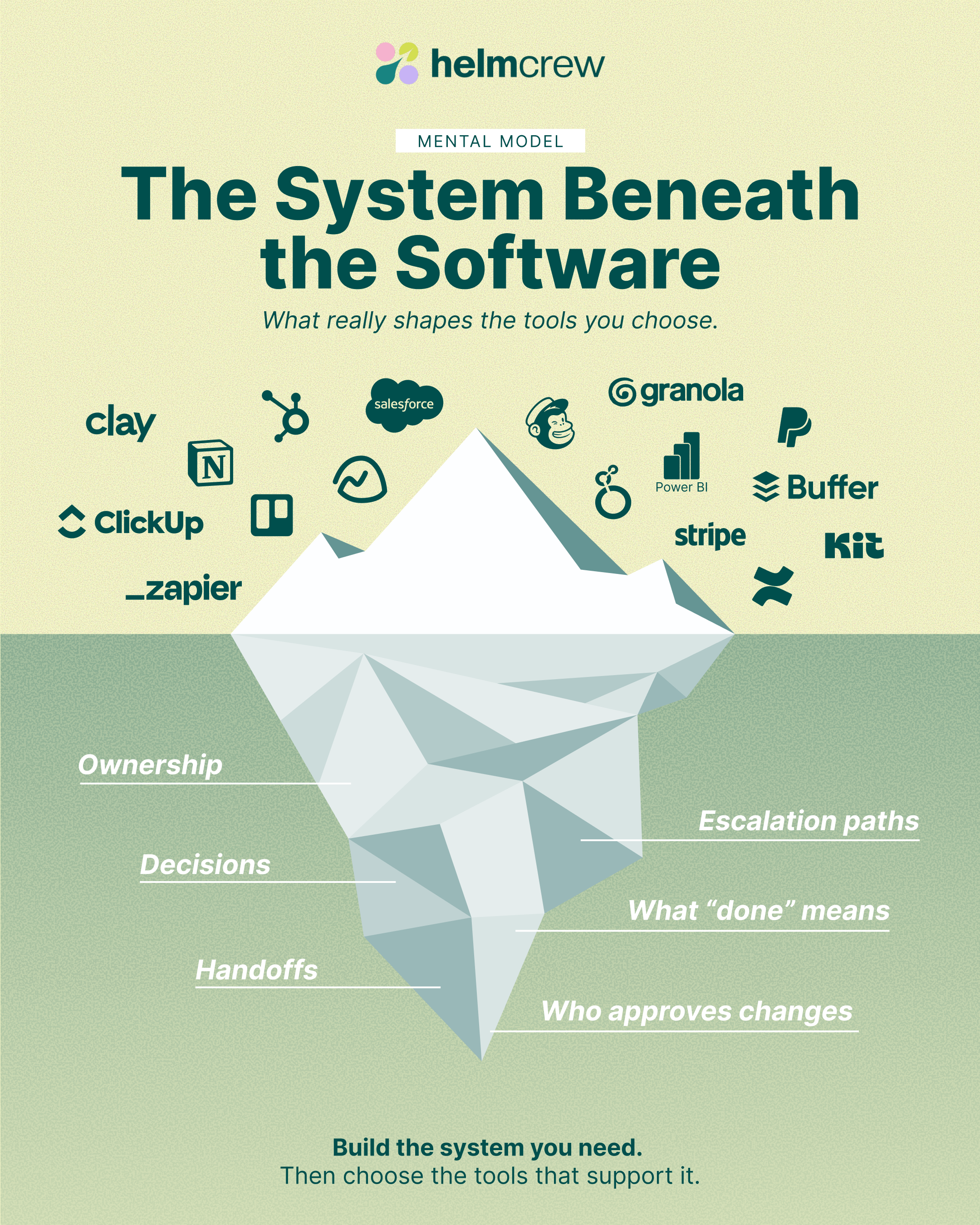 One of the most common expressions of the Complexity Trap is what might be called the iceberg problem: founders invest heavily in tools (the visible part), while the underlying system (the invisible part) remains unclear.